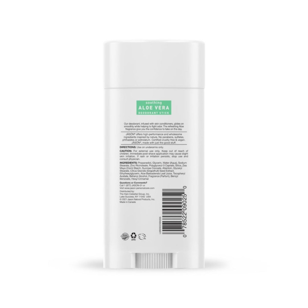 Az aloe vera stift - alumínium mentes dezodor összetevői közt található ricinusolaj, kukoricakeményítő és szódabikarbóna semlegesíti a szagokat, míg a grapefruit mag kivonat elpusztítja a baktériumokat és gombákat. Az aloe vera és a tápláló E-vitamin puha, kellemes érzést biztosít a hónalj számára.