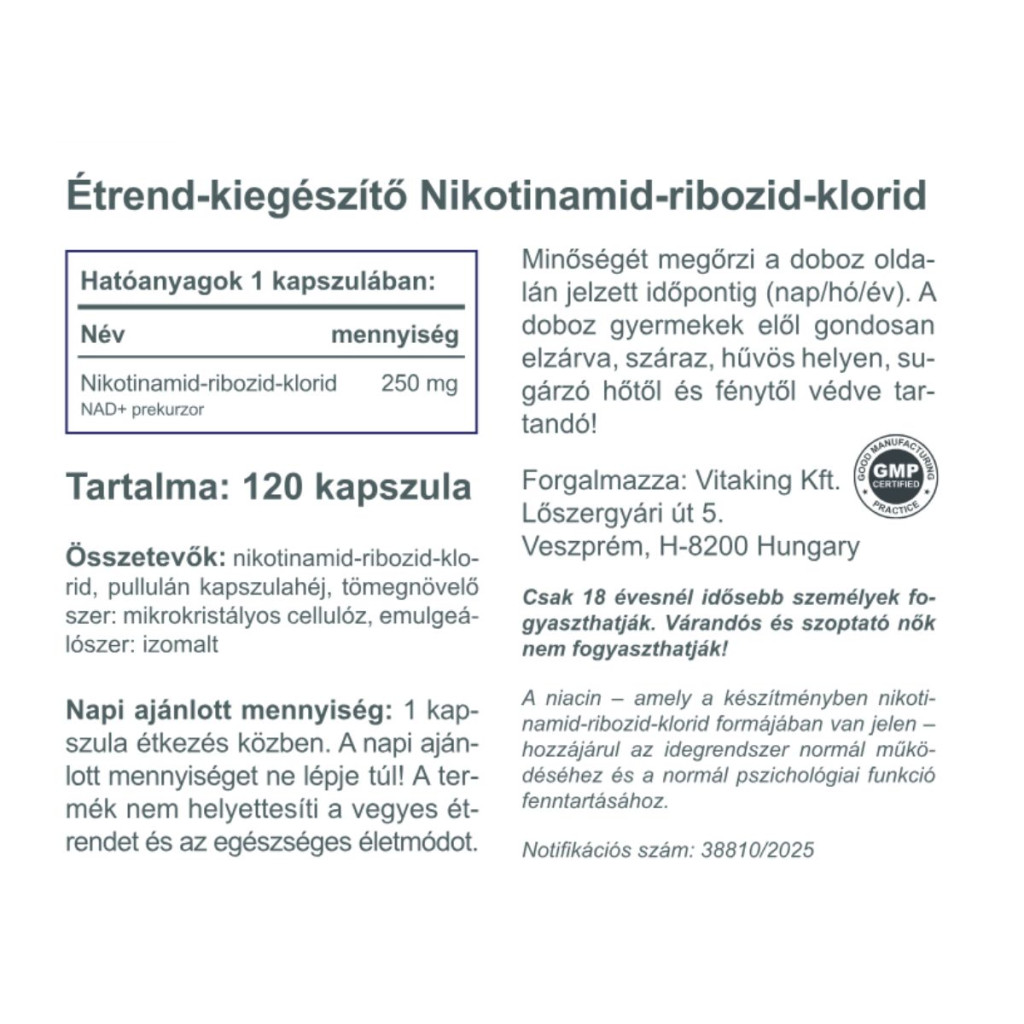 Vitaking NAD+ 250 – nikotinamid-ribozid-klorid