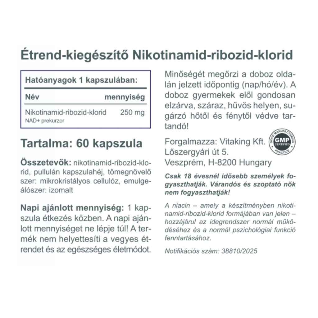 Vitaking NAD+ 250 – nikotinamid-ribozid-klorid