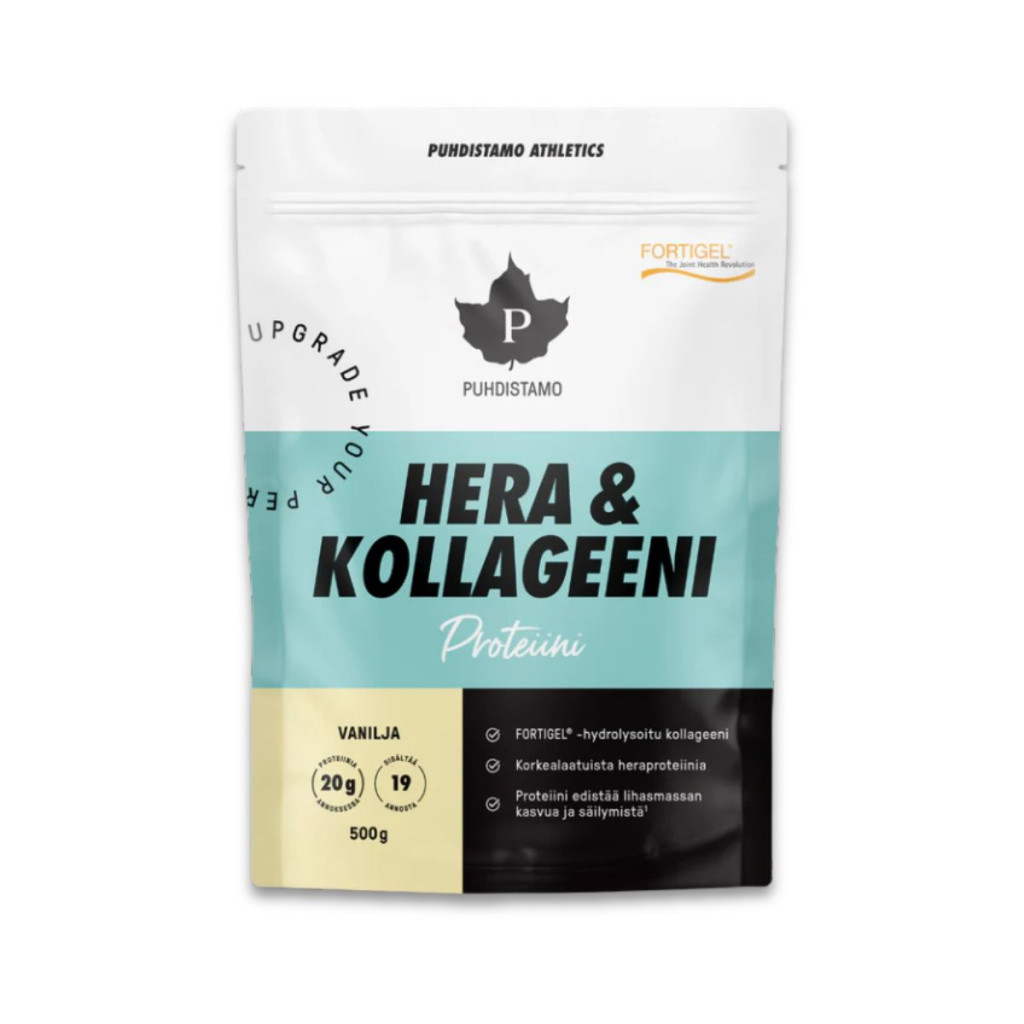 A Puhdistamo Hera Protein és kollagén azoknak készült, akik figyelnek a minőségre, és szeretnék étrendjüket megbízható fehérjeforrással kiegészíteni. A letisztult összetétel és a kellemes íz egyaránt azt szolgálja, hogy a fehérjebevitel ne kényszer, hanem természetes része legyen a napi rutinnak.